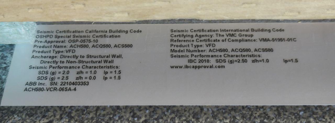 ABB ACH580-VCR-065A-4 HVAC VARIABLE FREQUENCY DRIVE 50 HP 65A 480V