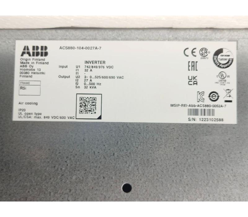 ABB ACS880-104-0027A-7 | 742/849/976 VDC | 27A | 32 KVA INVERTER FREQUENCY DRIVE