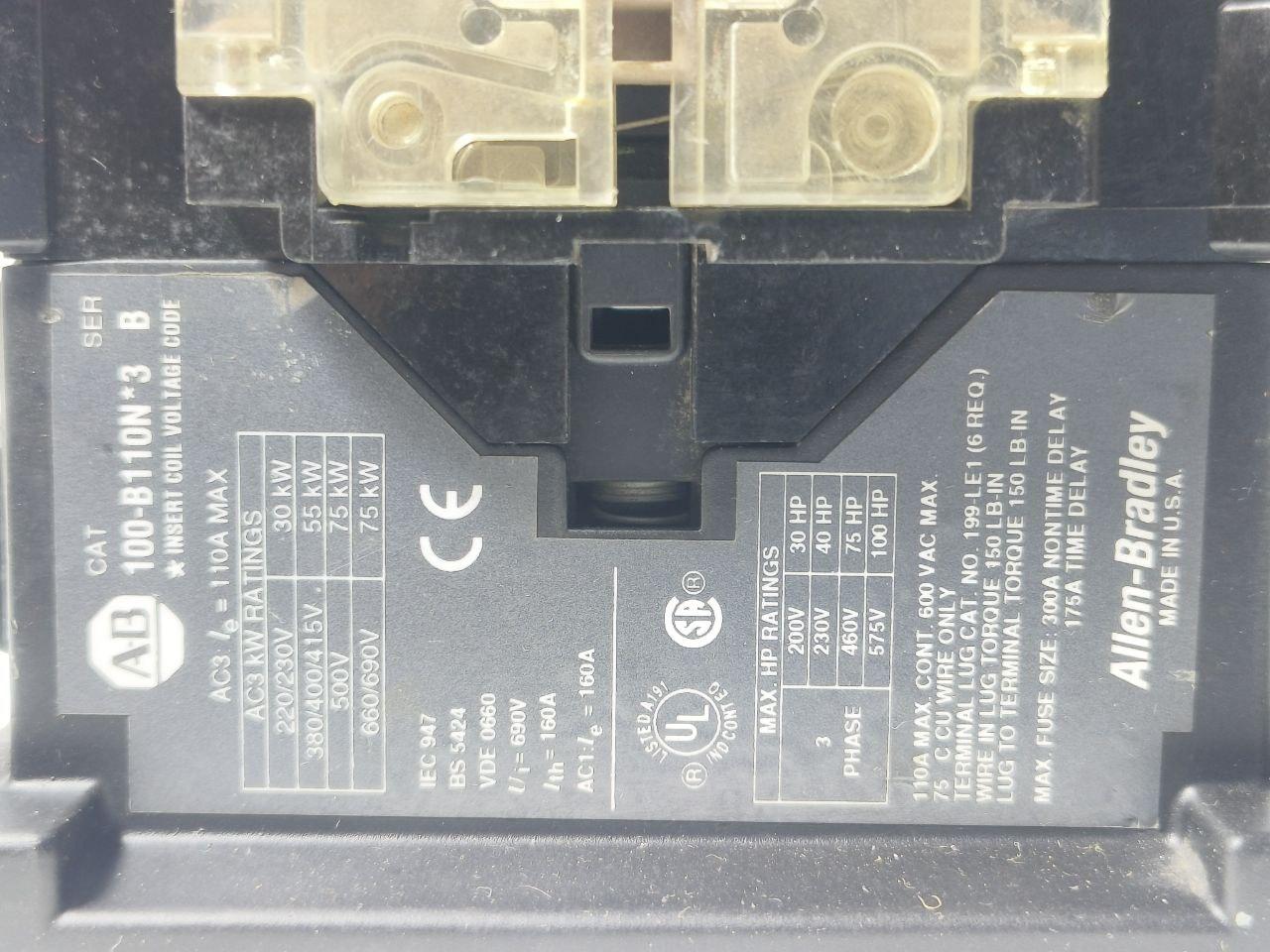ALLEN BRADLEY 100-B110N*3 3POLE 110-120V 50/60Hz MAGNETIC CONTACTOR 100B110N3