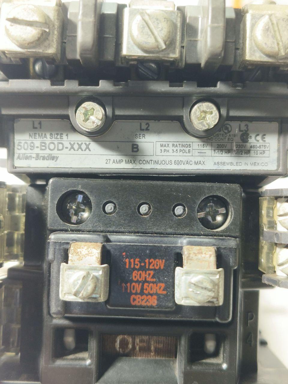 ALLEN BRADLEY 509-COD-XXX SER B NEMA SIZE 1 CONTACTOR 110-120V 50/60Hz 509CODXXX