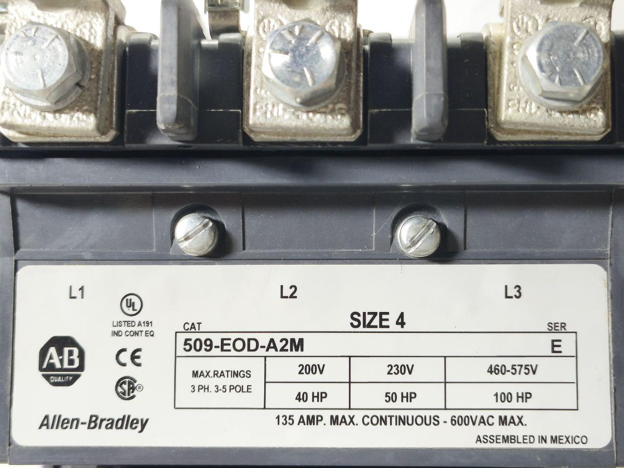 ALLEN BRADLEY 509-EOD-A2M /E STATER SIZE 4 NON-REVERSING 3POLE 600VAC 509EODA2M